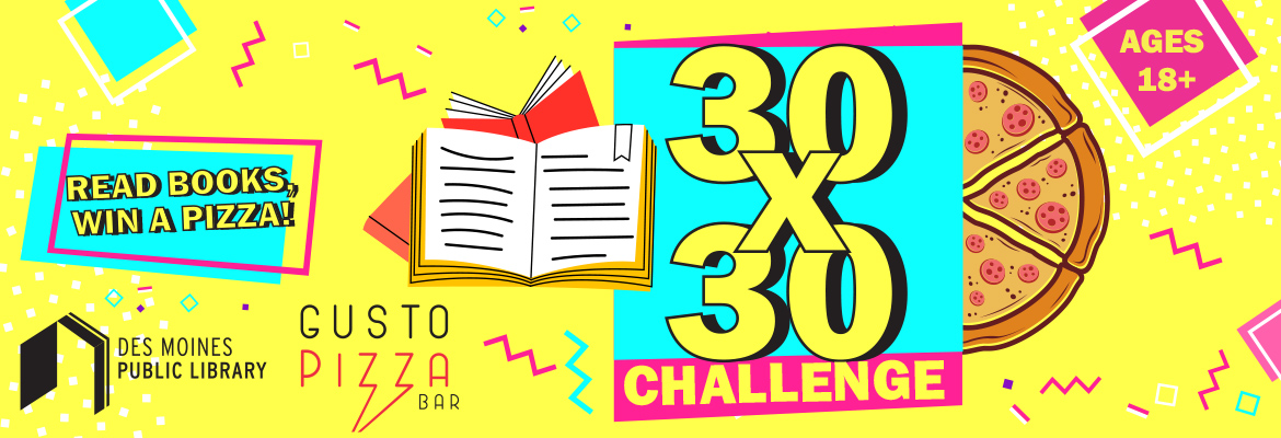 The Des Moines Public Library 30x30 Challenge is back again for another year! The concept is simple – read 30 minutes a day for all 30 days in November, and you’ll be eligible to win one of 30 free gift cards for pizza from our new partner, Dough Co. Pizza!
