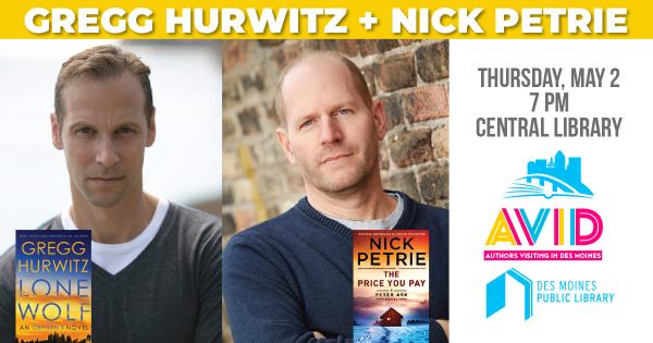 Hurwitz and Petrie will be at the Central Library on Thursday, May 2, at 7 PM for AViD! Doors open at 6 PM. More information can be found at dmpl.org/avid.