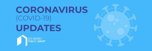 Like many of you, the Des Moines Public Library administration is monitoring the most recent news about the coronavirus in order to make the best decisions possible to keep the library’s staff, patrons and communities healthy and safe. We will continue to follow directions from state and local health officials, and respond as this situation develops.