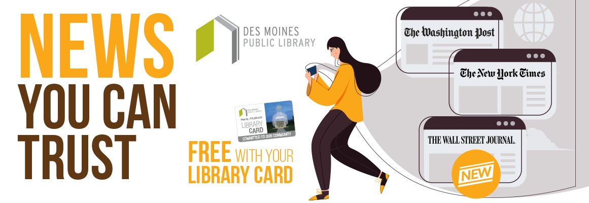 Read news that you can trust with your Des Moines Public Library card. Your card gives you free, digital access to The New York Times, The Wall Street Journal, The Washington Post, and dozens of news magazines. Follow the instructions below to take advantage of what your library card offers.