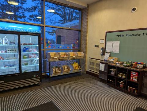 The Franklin Community Fridge is located inside the east entrance of Franklin Avenue Library, 5000 Franklin Avenue. It is open to the public (for donations and pickups) Monday through Sunday during the library's open hours.