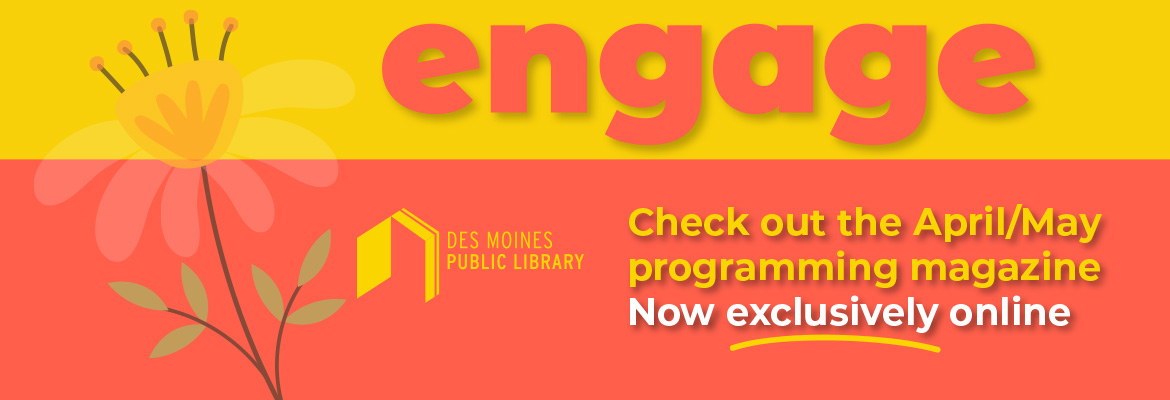 engage, the Des Moines Public Library's bi-monthly event publication, is now available exclusively online. With events separated by location, it's never been easier to browse and see what fun things are coming up at the library.
