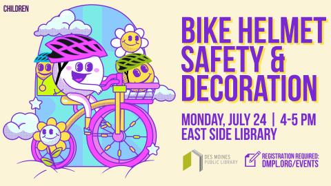 Children will learn basic bicycle safety and be properly fitted for a helmet. Use our craft supplies to decorate your bicycle helmet. You may bring your own helmet to decorate. New children's helmets are available while sizes and supplies last. Registrants will be given first choice of helmets. Sizes cannot be guaranteed.