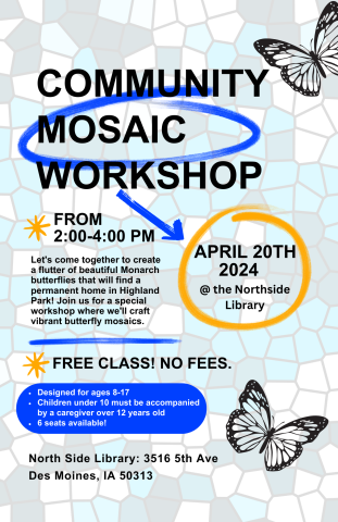 This is a collaborative initiative aimed at brightening our town's public spaces with vibrant mosaic murals while engaging local children and the community in the creative process. Through this hands-on workshop, the youth will contribute to the design and construction of colorful landmarks, fostering a sense of belonging and pride in their neighborhoods. Materials are limited so registration is required.