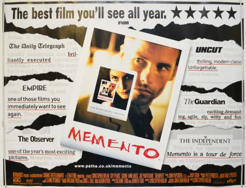 October's film selection is Christopher Nolan 2000 mystery thriller Memento, starring Guy Pearce and Carrie-Anne Moss.