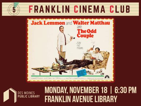 November's film selection is the 1968 comedy The Odd Couple, starring Jack Lemmon and Walter Matthau.