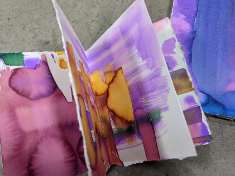 Come to Forest and make a watercolor book! We'll each paint a big sheet of paper, then divide it up and make a book out of it.