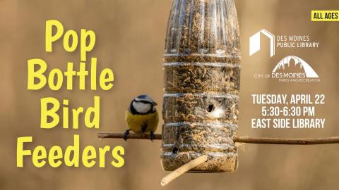 Join us this Earth Day for a fun and eco-friendly workshop where we turn everyday pop bottles into a bird feeder! Joel with City of Des Moines Parks & Rec will help you craft your bird feeder and fill it with bird feed to take home. This hands-on event is perfect for families, children, and nature enthusiasts of all ages. All materials will be provided for you as supplies lasts!