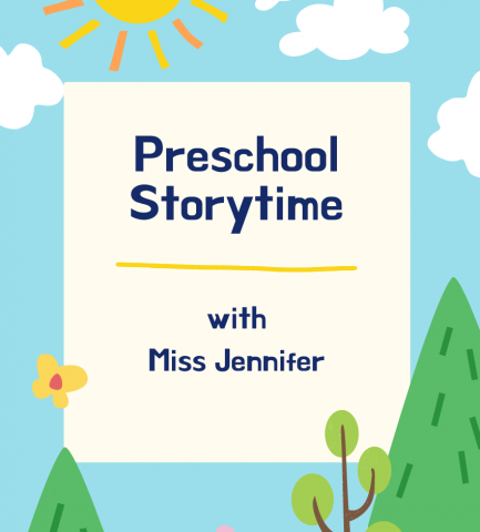 Join Miss Jennifer for Preschool Storytime on Monday mornings at 10:15 a.m. There will be stories, rhymes, music, and more.