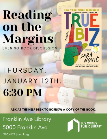 Our January selection is True Biz by Sara Novic. Copies will be available for pick-up at the Franklin Ave Library Help Desk starting December 16th.