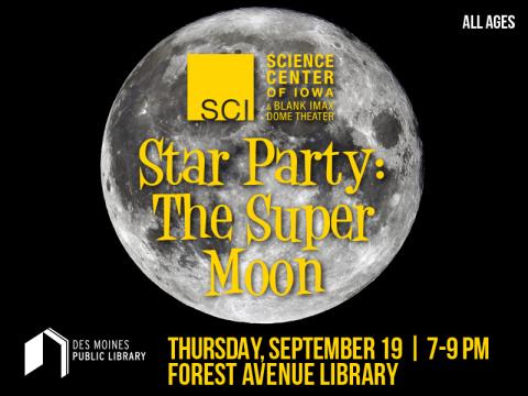 Join SCI staff and volunteers to observe the Super Moon through high-powered telescopes. Engage with stargazing guides to investigate the science of our solar system and beyond. This event will be held on The Forest Ave Library lawn, and we will be viewing the full Super Moon.