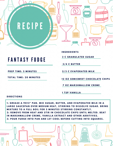 Registrants will receive a FREE bag with (almost) all the supplies needed to make fudge at home. The ingredients provided are: sugar, evaporated milk, semisweet chocolate chips, and marshmallow creme. Participants will need to supply a 9x13 inch pan, butter, vanilla extract and whatever additional add in's you'd like- such as walnuts, peanuts, sprinkles, etc!
