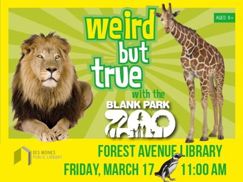Did you know that Emu's can't walk backwards and Polar Bears don't have white fur? Don't believe us? Ask an expert from the Blank Park Zoo and Celebrate Spring Break with an armful of animal books. We will meet mystery animal ambassadors and learn some of the wackiest tidbits and trivia about how weird animals can be! All Ages