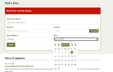 Welcome to the Iowa Adventure Pass with the Des Moines Public Library!