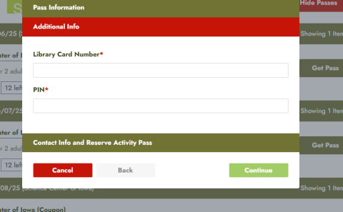 - Only staff may cancel passes - call (515) 283-4152 ext. 3 or email reference@dmpl.org to cancel.