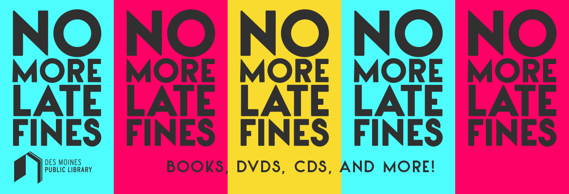 Beginning Tuesday, January 16, 2024, the Des Moines Public Library no longer charges late fines for books, DVDs, CDs, and more materials.